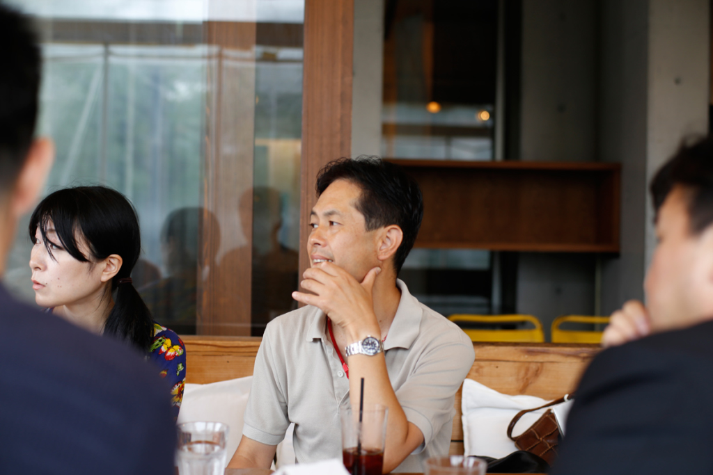 朝からあいにくの雨でしたが、せっかくなので屋根のある外のテラス席に陣取って、まずは自己紹介から。